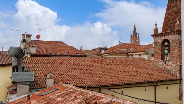 Nelle immediate vicinanze di Piazza delle Erbe, nel cuore del centro storico di Verona, proponiamo in vendita elegante appartamento sito al piano 3° inserito in un palazzo anni '50 in ottimo stato di conservazione. L'abitazione, servita da ascensore, è composta da ampia zona giorno con un luminoso salone e cucina collegata ma appartata con accesso diretto all'esclusivo terrazzo abitabile, con buona vista aperta, ideale per momenti conviviali. Un disimpegno porta alla zona notte composta da 1 camera matrimoniale, una camera doppia, studio/camera singola e due bagni, entrambi finestrati. Completano la proposta soffitta e cantina. Eleganza, quiete e funzionalità si fondono per questa opportunità in pieno centro storico. Cl en F Ipe 207,33 kwh/mq. Richiesta € 648.000,00
